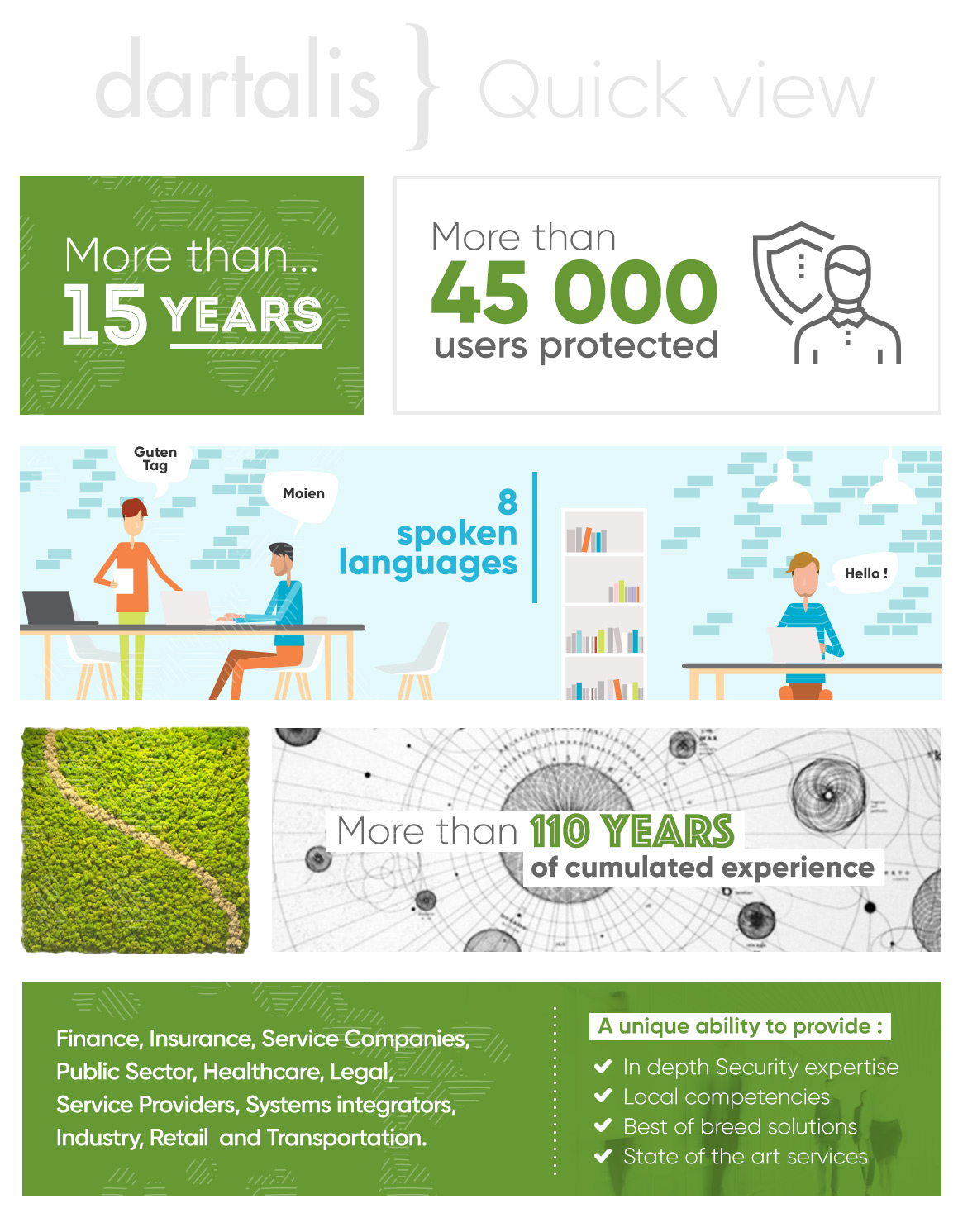 dartalis is a regional leader and an independent company focused on information security offering a wide array of services ensuring the protection of our clients’ mission critical infrastructure. Committed to excellence in each undertaking, we help companies to achieve strategic IT and security goals by delivering, design advisory – technology integration – support and maintenance services, based on best practices and complying with standard and regulation constraints.